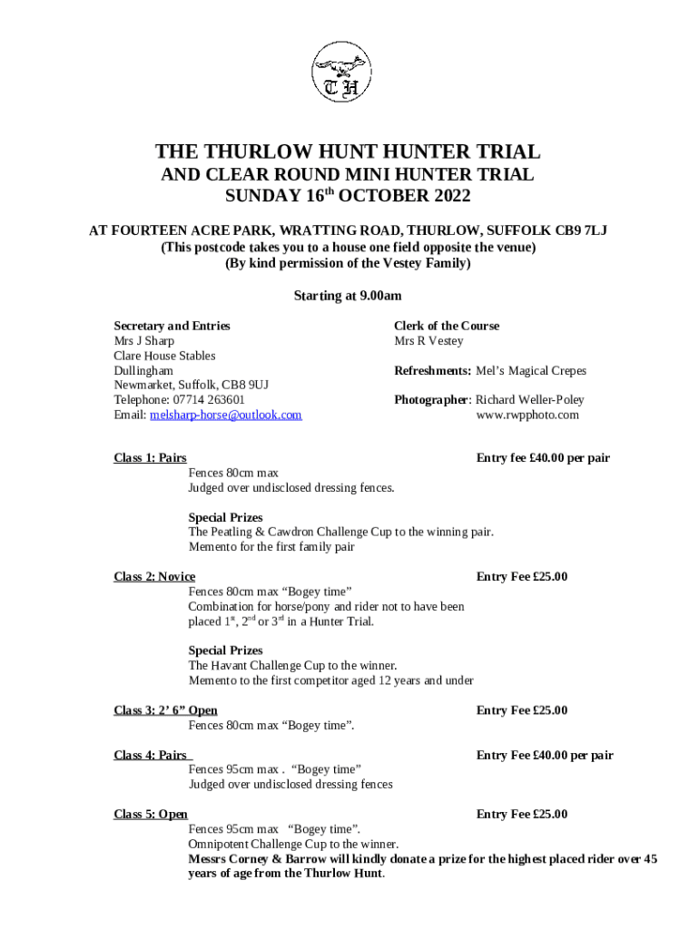 Instructions for the THE THURLOW HUNT HUNTER TRIAL AND CLEAR ROUND ... form