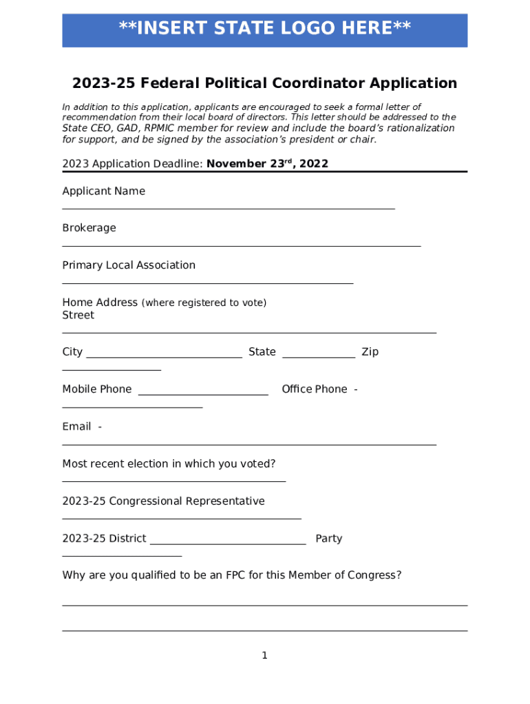 The **INSERT STATE LOGO HERE** is a fillable form in MS Word extension needed to be submitted to the relevant address to provide specific information. It has to be filled-out and signed, which may be done in hard copy, or via a certain solution such as PDFfiller. It lets you complete any PDF or Word document right in the web, customize it according to your requirements and put a legally-binding e-signature. Right away after completion, you can easily send the **INSERT STATE LOGO HERE** to the appropriate receiver, or multiple recipients via email or fax. The editable template is printable too due to PDFfiller feature and options presented for printing out adjustment. Both in digital and physical appearance, your form should have a organized and professional appearance. It's also possible to turn it into a template for further use, so you don't need to create a new file again. You need just to amend the ready form.
