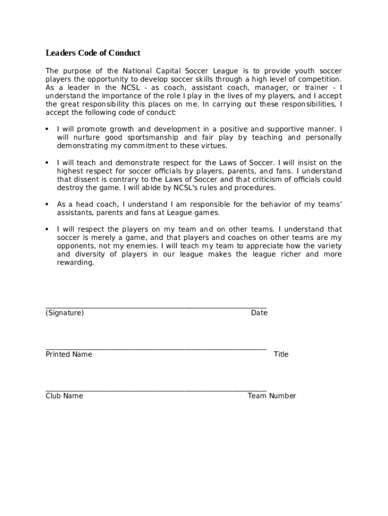 Leaders Code of Conduct - National Capital Soccer League template instructions