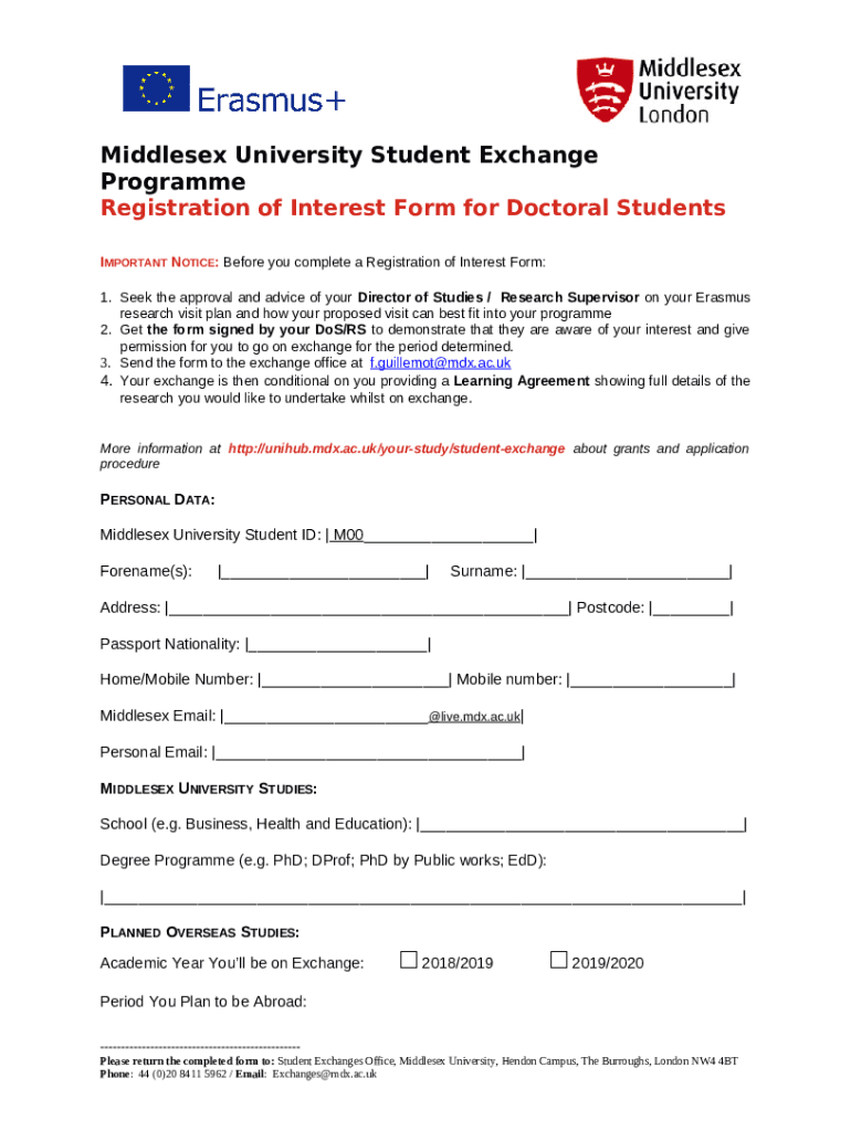 The Middlesex University Application - PDF Free Download is a Word document that has to be completed and signed for specified purposes. Next, it is furnished to the exact addressee in order to provide specific info of any kinds. The completion and signing may be done in hard copy by hand or with a suitable solution e. g. PDFfiller. Such tools help to complete any PDF or Word file without printing them out. While doing that, you can edit its appearance according to your requirements and put a valid electronic signature. Once done, the user ought to send the Middlesex University Application - PDF Free Download to the respective recipient or several ones by mail or fax. PDFfiller has got a feature and options that make your blank printable. It has different options when printing out appearance. It does no matter how you'll send a form after filling it out - physically or by email - it will always look professional and firm. In order not to create a new writable document from scratch again and again, make the original Word file into a template. After that, you will have a rewritable sample.