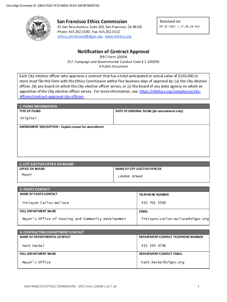 DocuSign Envelope ID: EB537A2274794BDD9CE05BC8F6B2973DSan Francisco Ethics CommissionReceived on:25 Van Less Avenue, Suite 220, San Francisco, CA 94102