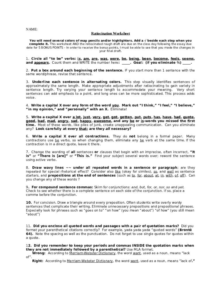 Template Ratiocination Worksheet instructions