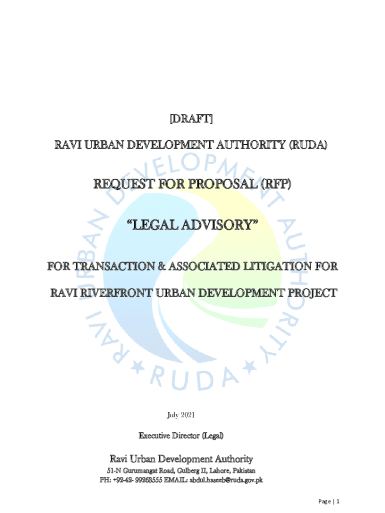 RAVI URBAN DEVELOPMENT AUTHORITY (RUDE)REQUEST FOR PROPOSAL (RFP)LEGAL ADVISORY