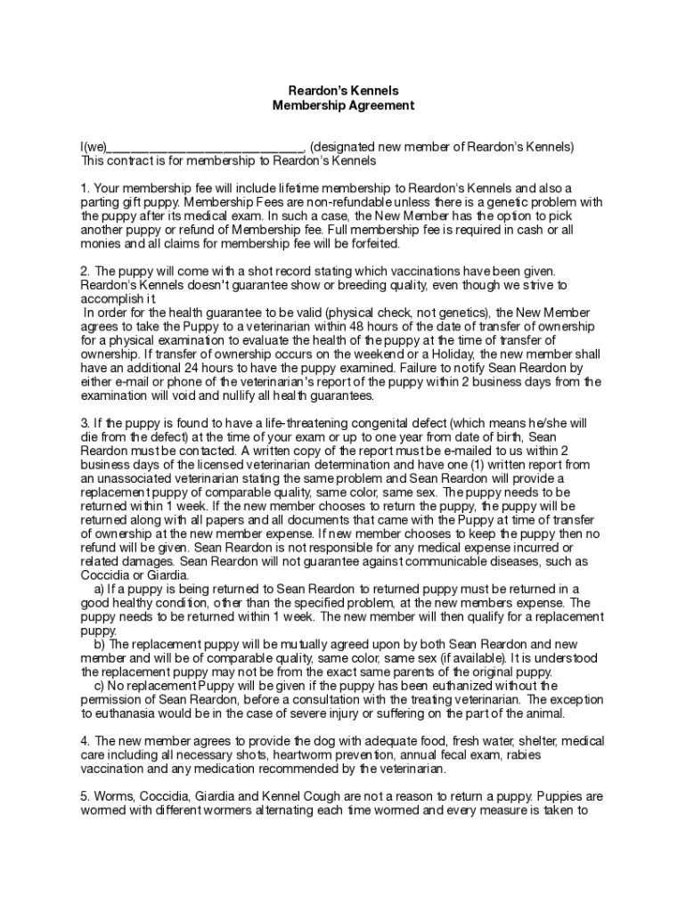 Membership Agreement(we)___, (designated new member of Rear dons Kennels)This contract is for membership to Rear dons Kennels1. Your membership fee will include lifetime membership