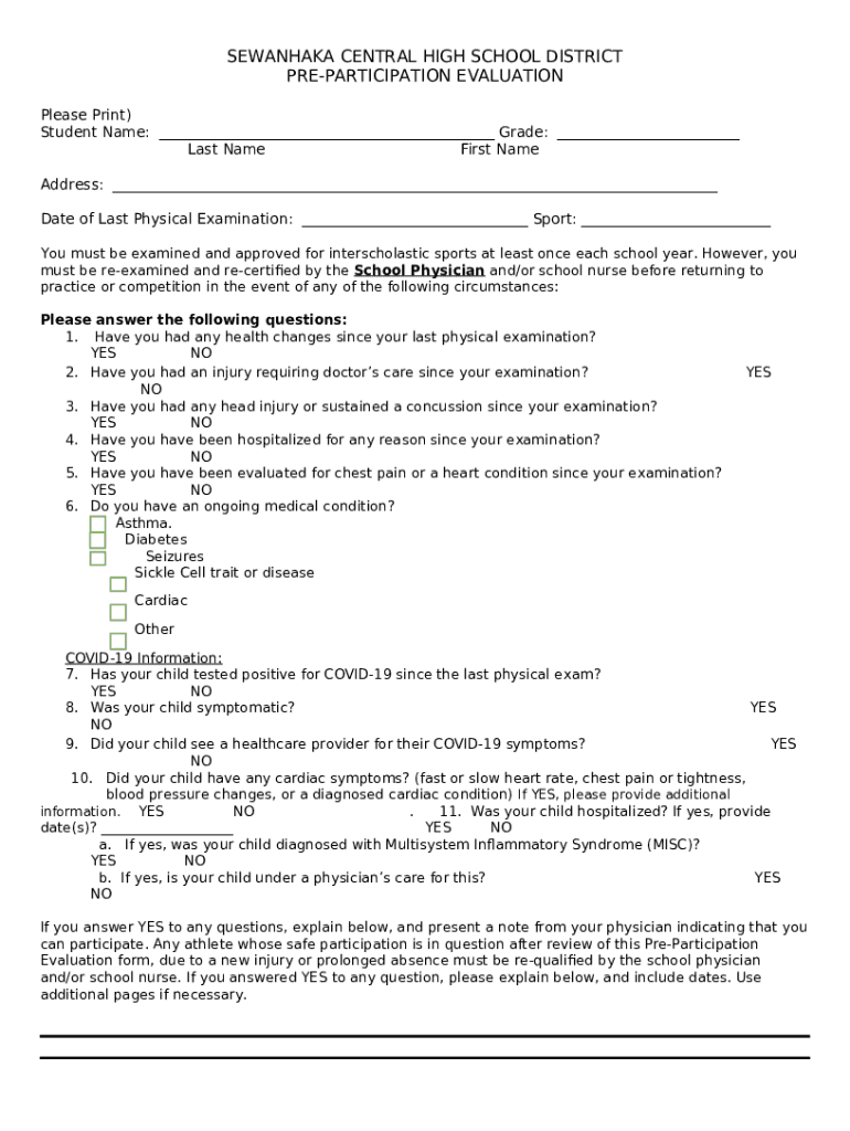 The New Hyde Park Athletic/Health s is a Word document you can get completed and signed for specified purposes. In that case, it is furnished to the relevant addressee in order to provide specific info and data. The completion and signing is available or using a trusted tool e. g. PDFfiller. Such services help to complete any PDF or Word file online. While doing that, you can customize it depending on your needs and put a valid electronic signature. Upon finishing, you send the New Hyde Park Athletic/Health s to the respective recipient or several recipients by email or fax. PDFfiller includes a feature and options that make your Word form printable. It has different options when printing out appearance. It does no matter how you'll send a document - physically or by email - it will always look neat and firm. To not to create a new file from the beginning over and over, make the original file into a template. Later, you will have an editable sample.