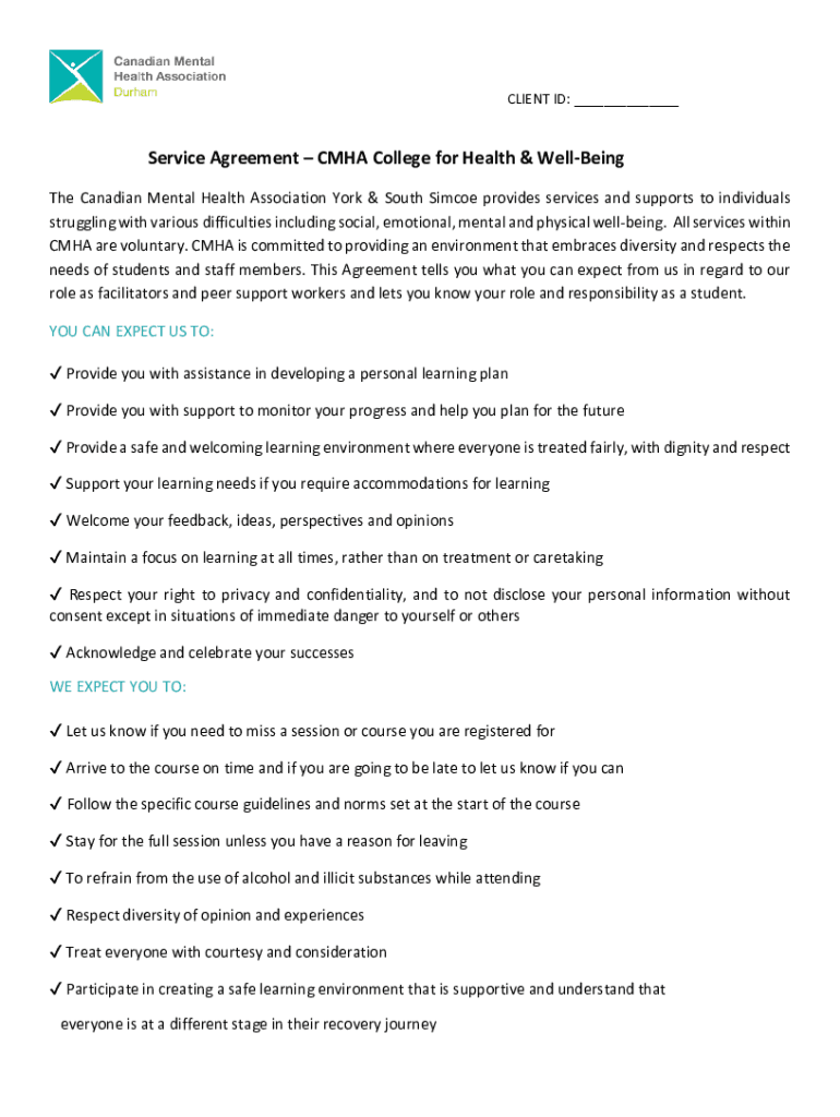 Get the free Service AgreementCMHA College for Health & Well-Being - cmha-yr on