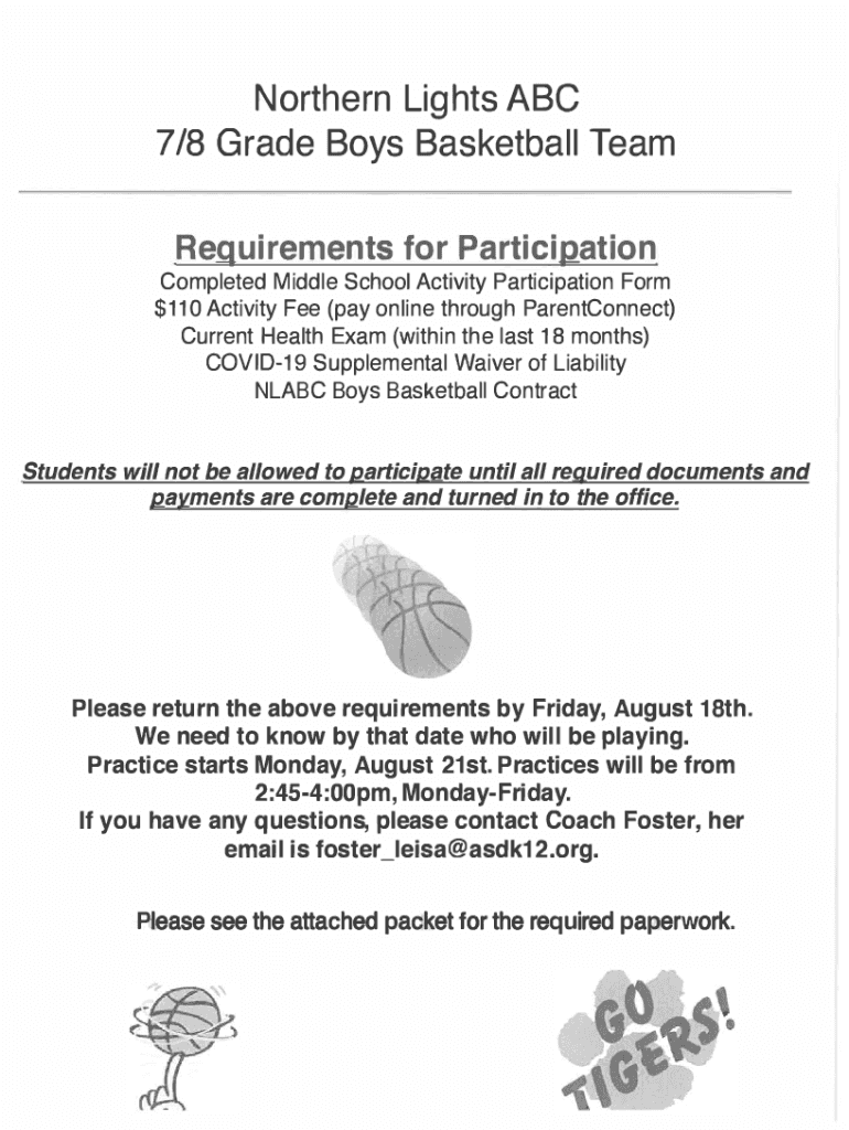 Requirements for ParticipationCompleted Middle School Activity Participation Form