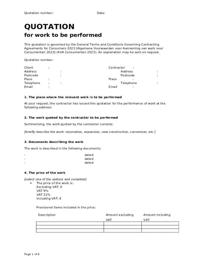 What is QUOTATION for work to be pered - Bouwend Nederland Form?