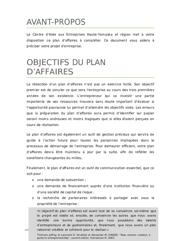 Guide de rdaction du Plan d'affaires - Ville de Montral template instructions