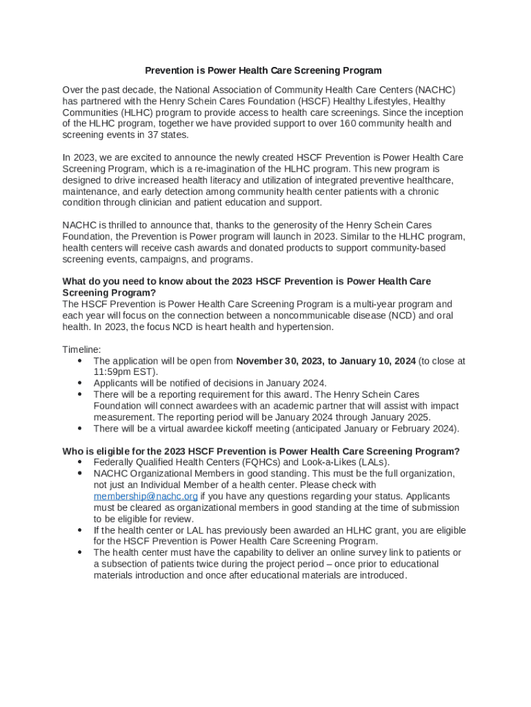 How should you fill out the Prevention is Power Health Care Screening Program template