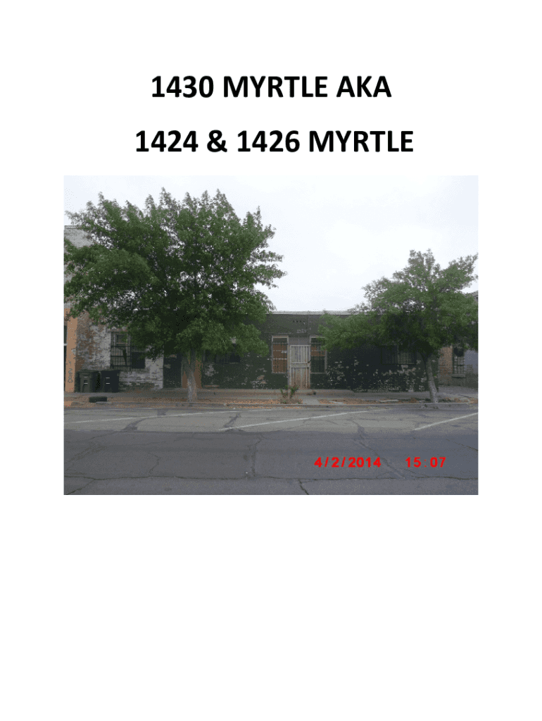 1430 MYRTLE AKA 1424 & 1426 MYRTLEBUILDING AND STANDARDS BOARD AGENDA ITEM #3 FOR WEDNESDAY, APRIL 30, 2014 ENVIRONMENTAL SERVICES DEPARTMENT CODE COMPLIANCE DIVISION MEMORANDUM April 3, 2014 TO:The