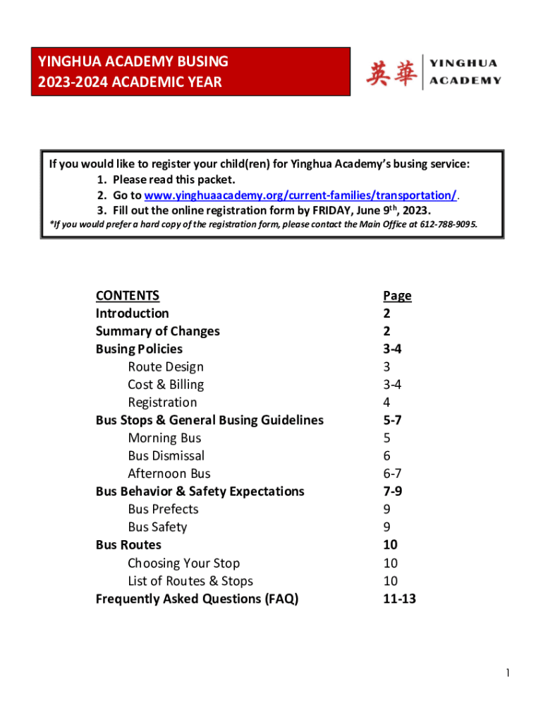 2. Go to www.yinghuaacademy.org/currentfamilies/transportation/.