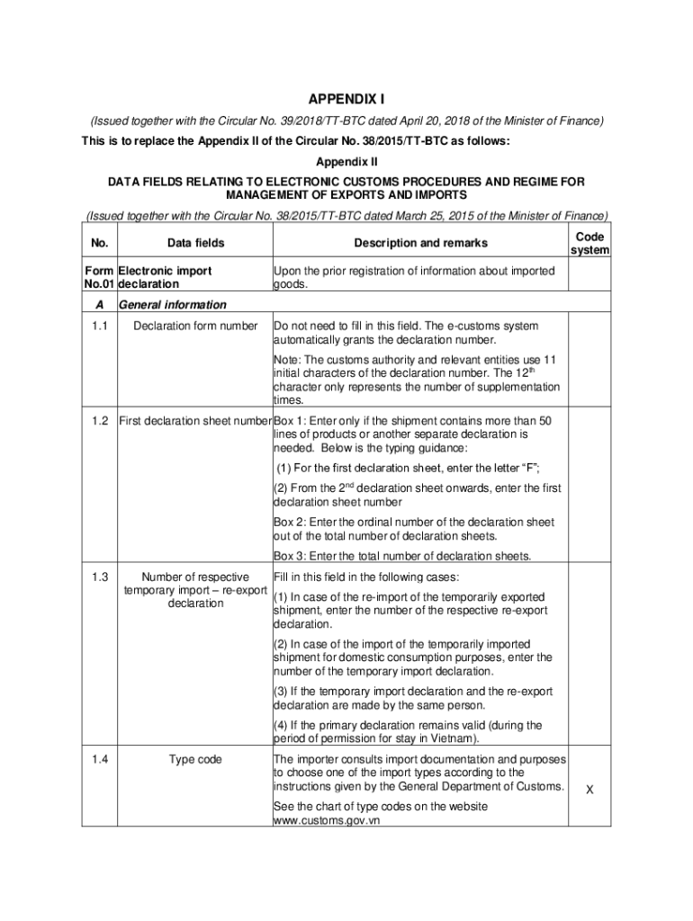 (Issued together with the Circular No. 39/2018/TT BTC dated April 20, 2018, of the Minister of Finance)