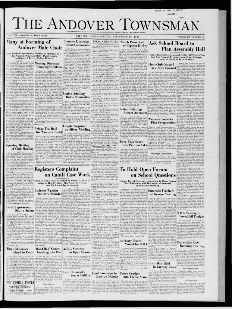 ME MOR I A LHAL LLI BRARY,ANDOVER. | aMA S S .1 he Andover T ownsman Aniln .fr r.r rrw lirr r and ! , Aral, l u l t h e m .n l 7, atralchtforw ard. ol.rr, patriotic N . E n ilan d TownPHILLIPS MtOOKSANDOVER.MASSACHUSETTS,R