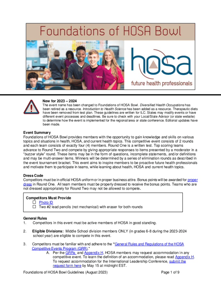Get the free The event name has been changed to Foundations of HOSA Bowl