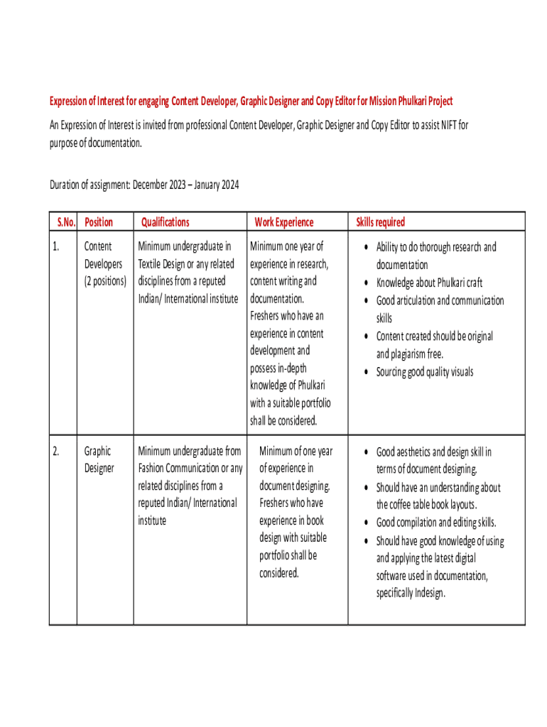 An Expression of Interest is invited from professional Content Developer, Graphic