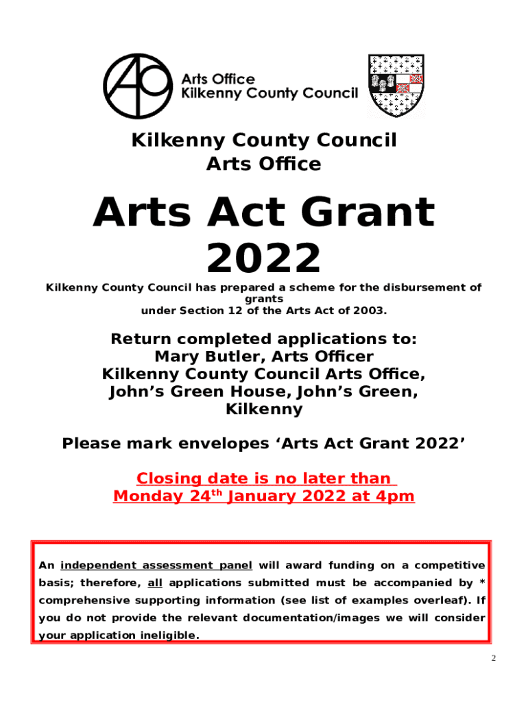 What is Arts Act Grants 2022 Application Form?