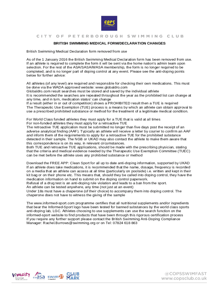Template BRITISH SWIMMING MEDICAL /DECLARATION CHANGES instructions