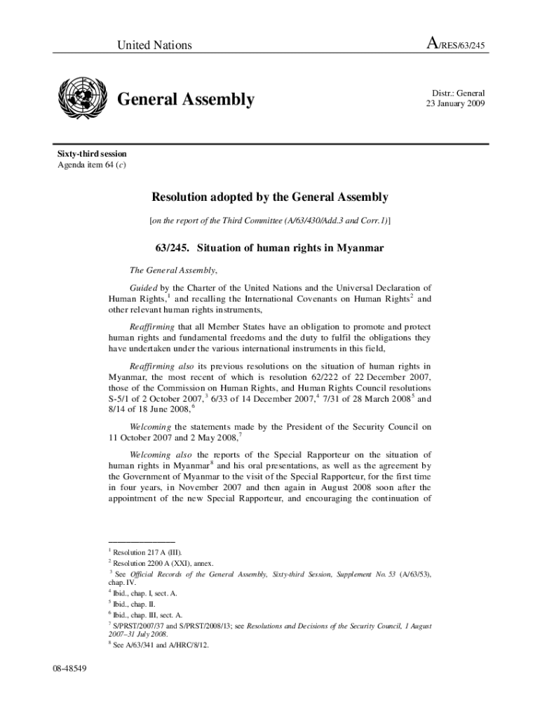 United NationsA/RES/63/245General AssemblyDistr.: General 23 January 2009Sixtythird session Agenda item 64 (c)Resolution adopted by the General Assembly [on the report of the Third Committee (A/63/430/Add.3