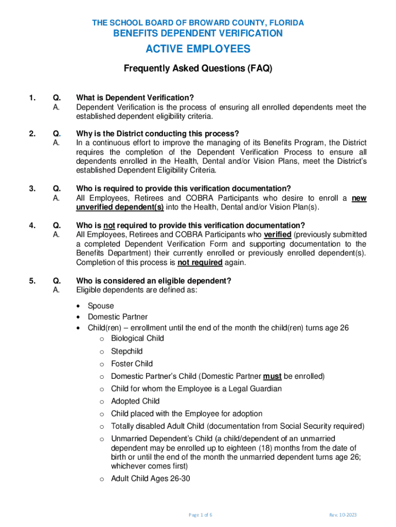 THE SCHOOL BOARD OF BROWARD COUNTY, FLORIDABENEFITS DEPENDENT VERIFICATIONACTIVE EMPLOYEES
