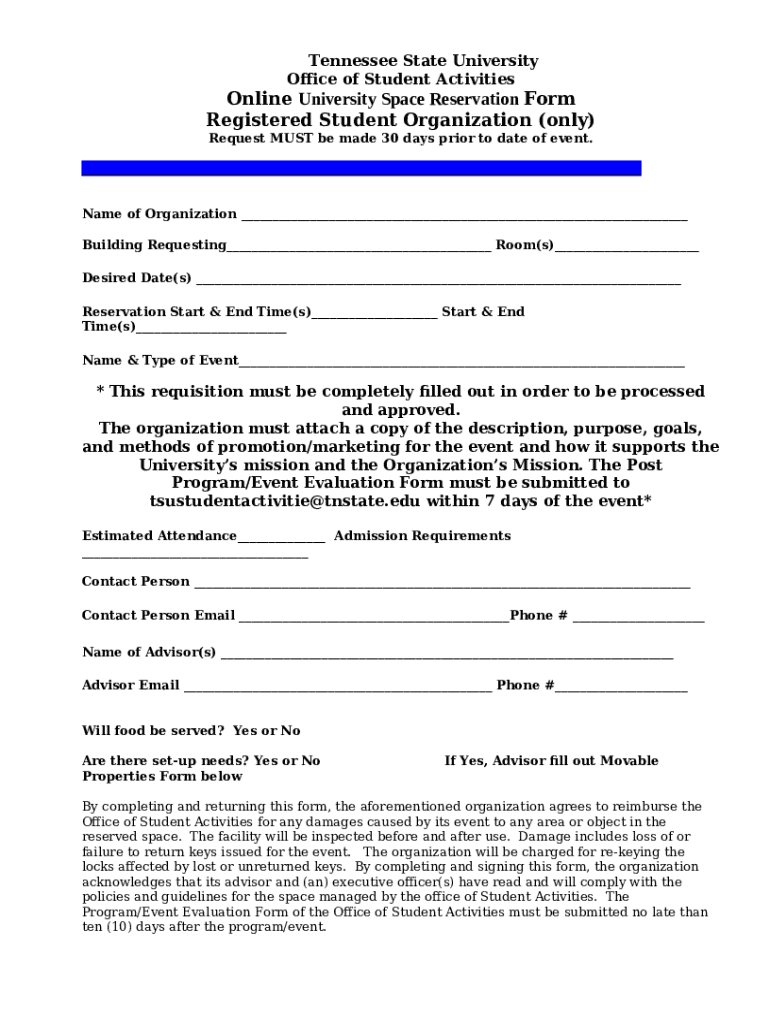 The Student Acivities Facility Request is a fillable form in MS Word extension that has to be completed and signed for specified purposes. Then, it is provided to the relevant addressee to provide some info and data. The completion and signing is available in hard copy by hand or with a suitable solution like PDFfiller. These services help to send in any PDF or Word file online. It also lets you customize it for your requirements and put a legal digital signature. Once finished, the user ought to send the Student Acivities Facility Request to the respective recipient or several ones by email and even fax. PDFfiller has a feature and options that make your Word form printable. It provides a variety of settings for printing out. It does no matter how you'll send a document - physically or by email - it will always look neat and organized. To not to create a new writable document from the beginning over and over, make the original Word file into a template. After that, you will have a rewritable sample.