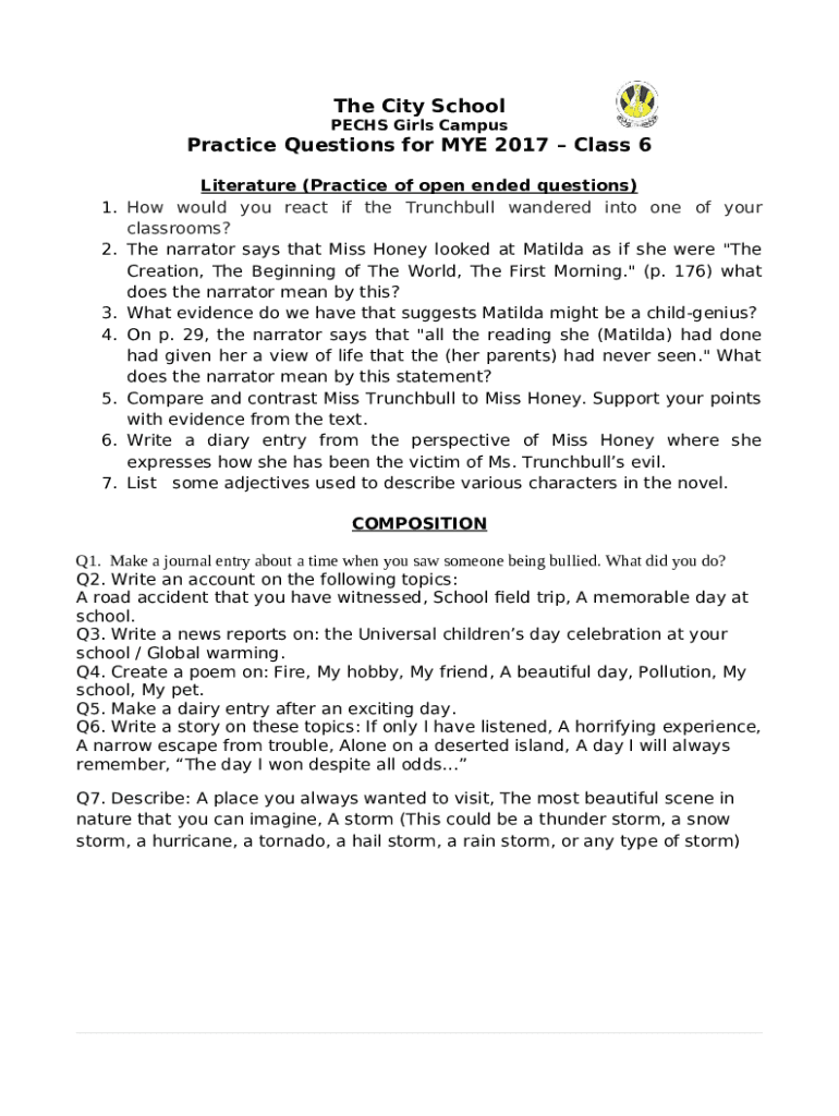 Frequently asked questions about English Practice Worksheet 2 for MYE 2017Class 6 template