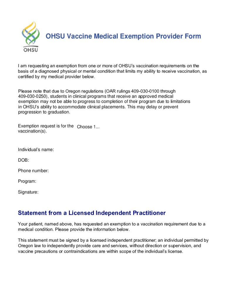 OHSU vaccine medical exemption is a formal request for individuals to opt out of receiving a vaccine due to medical reasons, typically supported by a physician's statement.