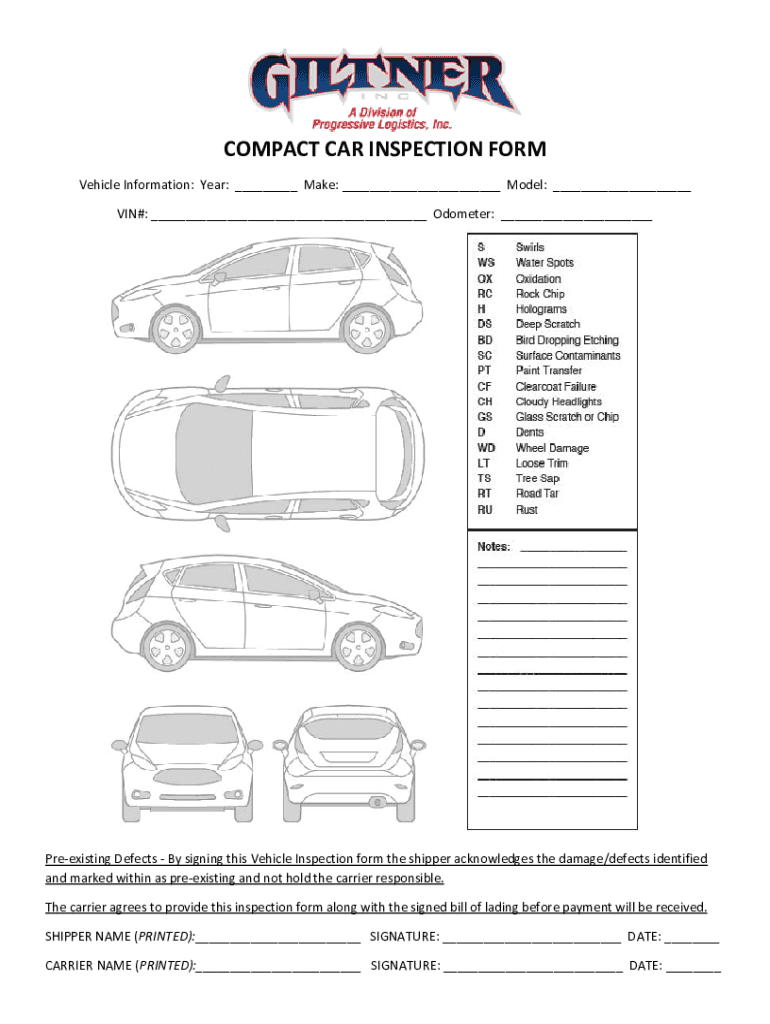 VIN#: ___ Odometer: ___Preexisting Defects By signing this Vehicle Inspection from the shipper acknowledges the damage/defects