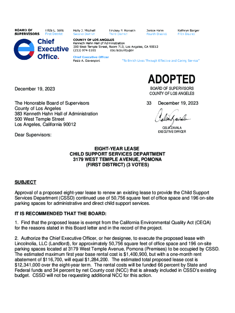 ADOPTED BOARD OF SUPERVISORS COUNTY OF LOS ANGELESDecember 19, 2023 The Honorable Board of Supervisors County of Los Angeles 383 Kenneth Hahn Hall of Administration 500 West Temple Street Los Angeles,