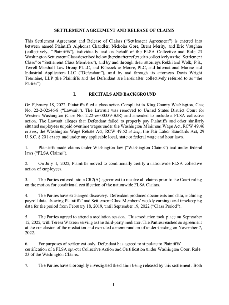 This Settlement Agreement and Release of Claims (Settlement Agreement) is entered into