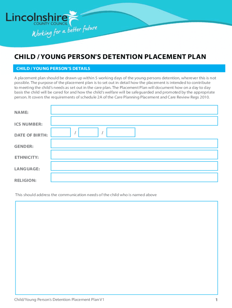 CHILD / YOUNG PERSON\'S DETENTION PLACEMENT PLAN