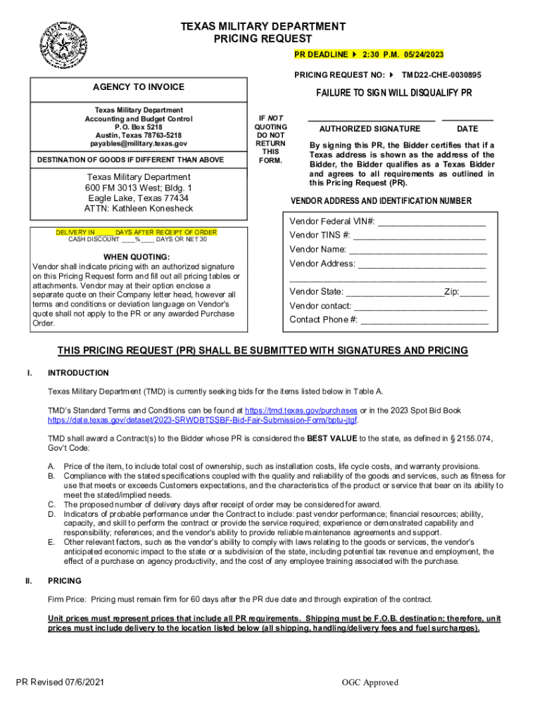 To fill out the Texas Military Department needs, individuals or organizations must complete the specific forms provided by the department, detailing their resource requirements and operational needs.