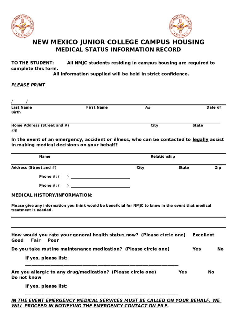 Frequently asked questions about the form new mexico junior college campus housing medical ...
