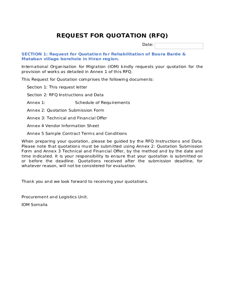 Instructions for the form Request for Quotations for Rehabilitation of Buura Barde ...