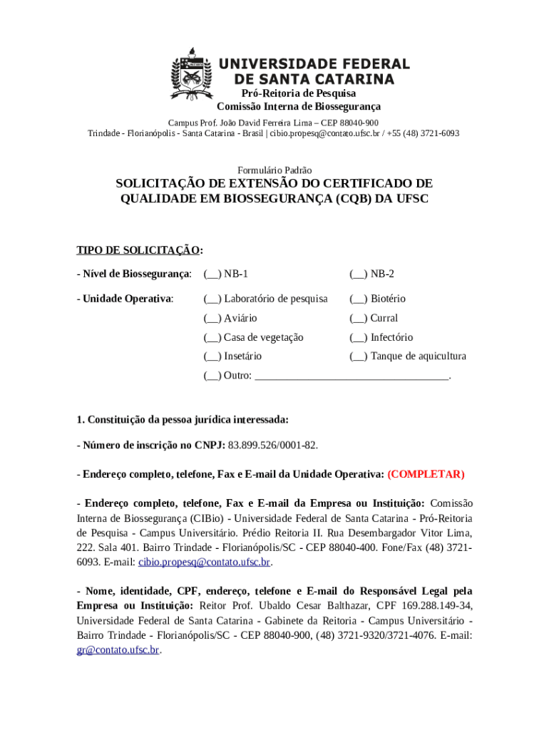 Instructions for the form o reitor pr0 7za/pare da universidade federal de santa