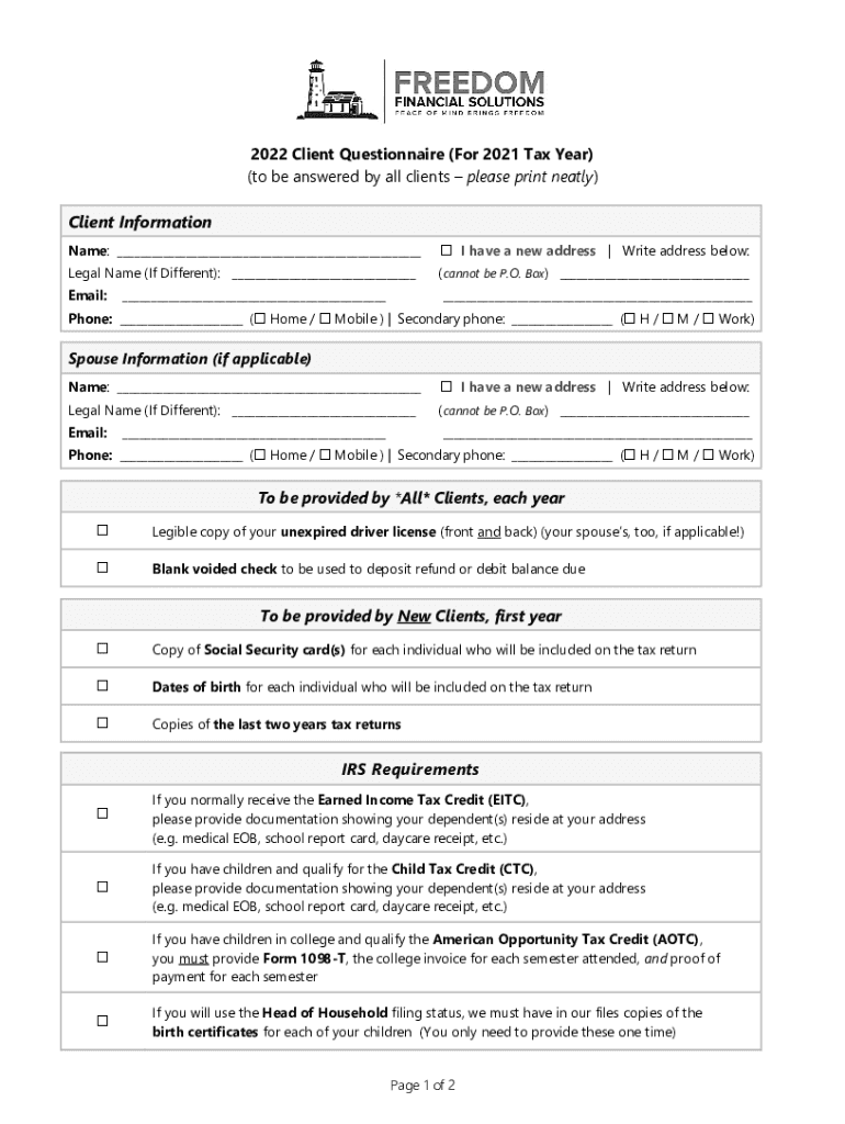 Individuals and businesses who seek assistance in filing their taxes are required to provide information to tax preparers using these questions.