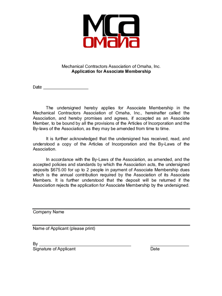 Attached please find an application for Associate Membership with the Mechanical Contractors