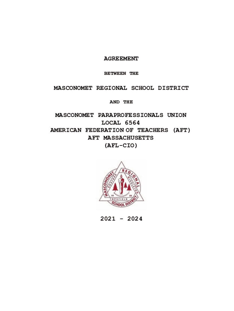 AGREEMENT BETWEEN THEMASCONOMET REGIONAL SCHOOL DISTRICT AND THEMASCONOMET PARAPROFESSIONALS UNION LOCAL 6564 AMERICAN FEDERATION OF TEACHERS (AFT) AFT MASSACHUSETTS (AFLCIO)2021 2024TABLE OF CONTENTS