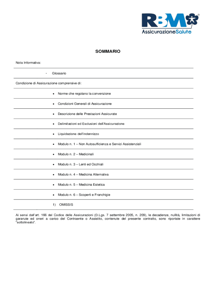 SOMMARIO Nota Informativa: GlossarioCondizione di Assicurazione comprensive di: Norme che regolano la convenzioneCondizioni Generali di AssicurazioneDescrizione delle Prestazioni AssicurateDelimitazioni