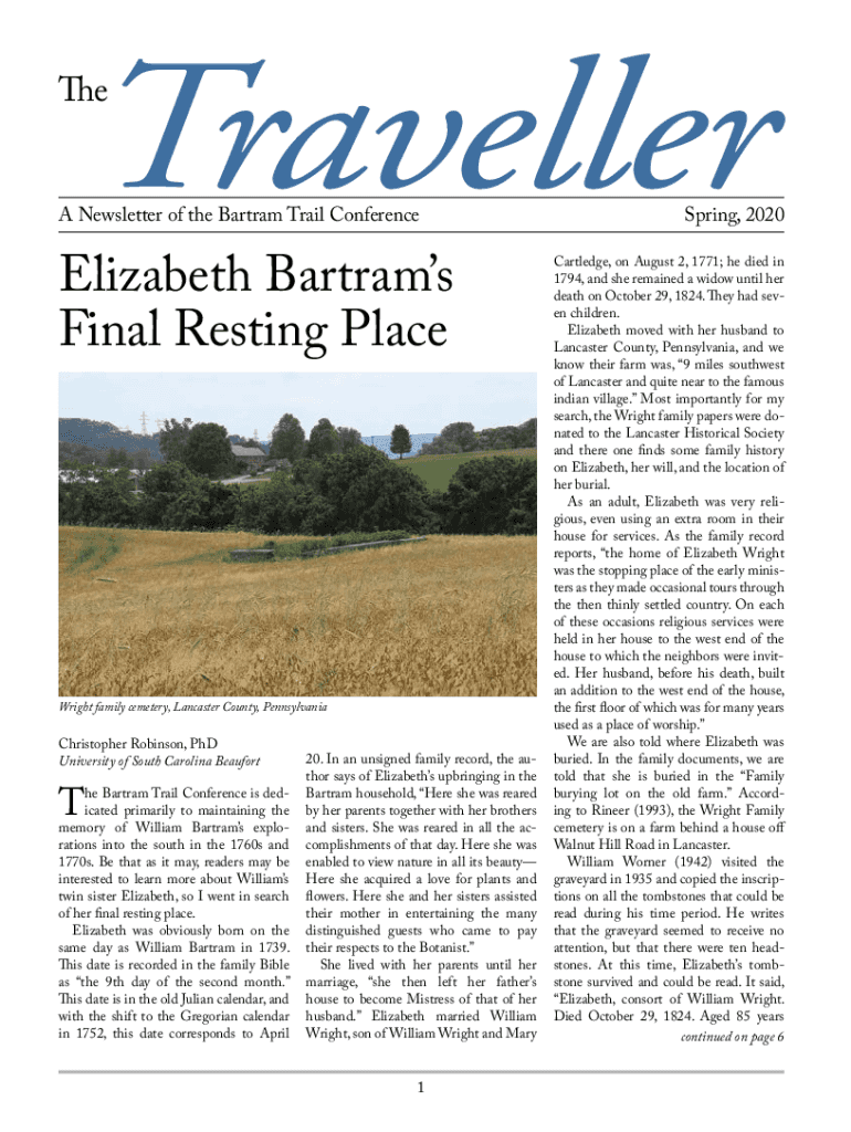 Get the free Elizabeth Bartram's Final Resting Place - bartramtrailconference wildapricot