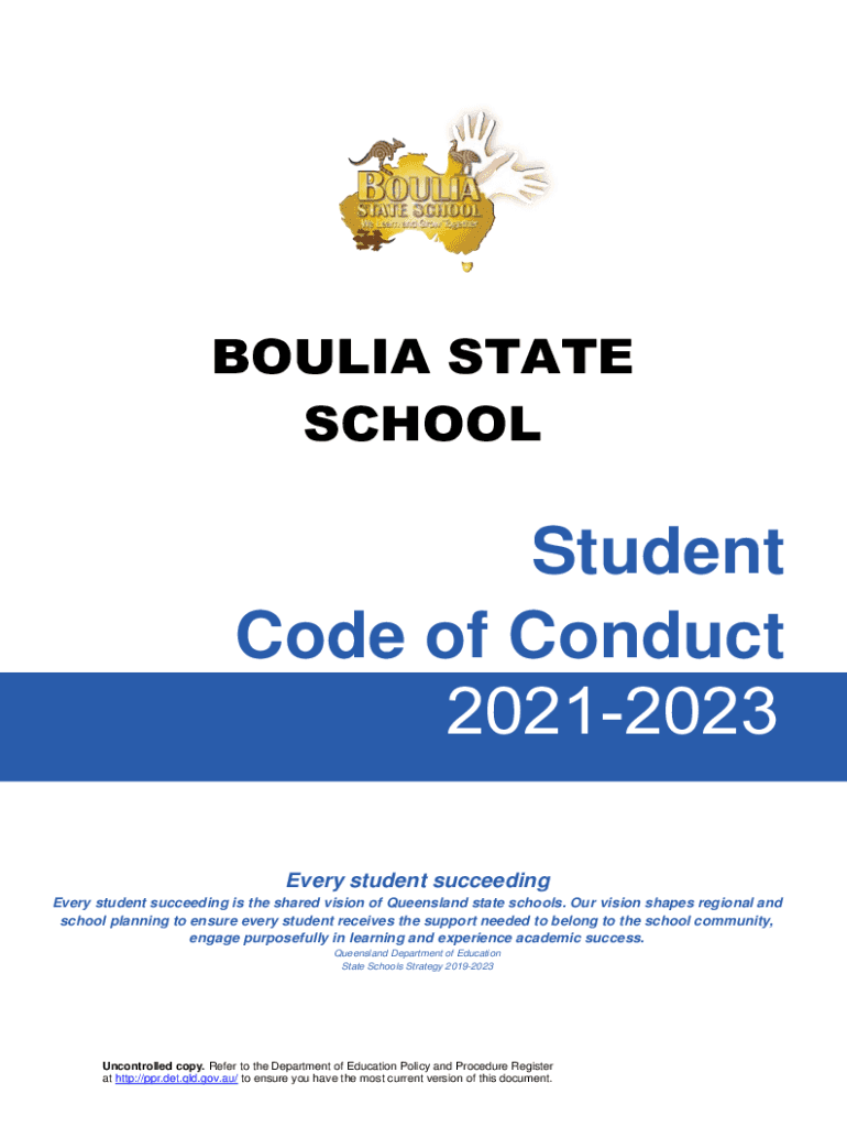 BOULIA STATE SCHOOLStudent Code of Conduct 20212023 Every student succeeding Every student succeeding is the shared vision of Queensland state schools. Our vision shapes regional and school planning