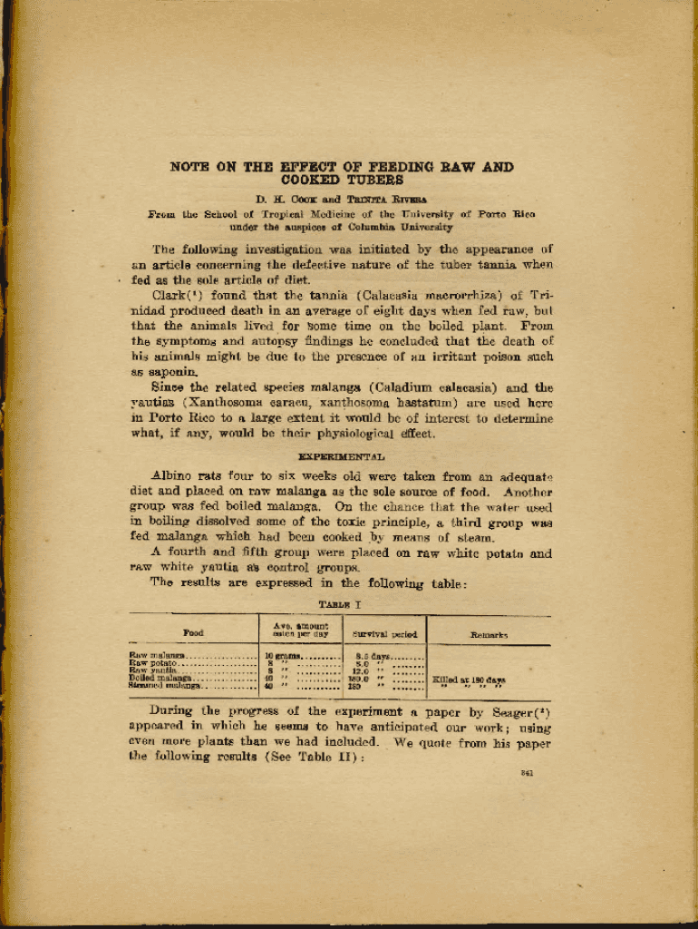 Get the free Note of the Effect of Feeding Raw and Cooked Tubers