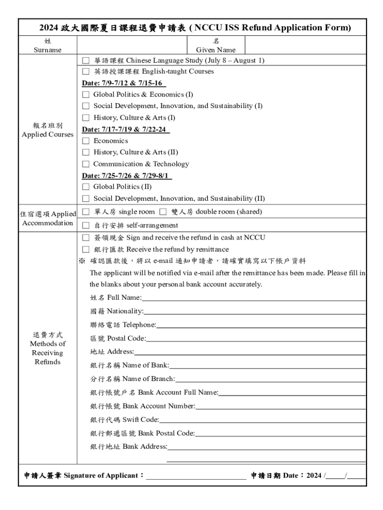 Get the free NCCU International Summer School Refund Application ...