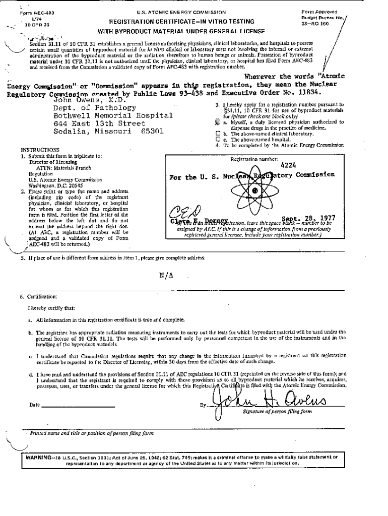 Fill out your nrc form 483 registration online with pdfFiller!
