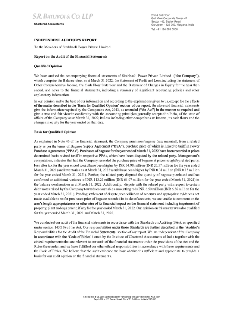 Get the free simbhaoli sugars ltd share price Auditors report