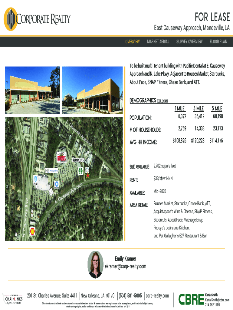 for leaseEast Causeway Approach, Mandeville, LA MARKET AERIALOVERVIEWSURVEY OVERVIEWFLOOR PLANTo be built multitenant building with Pacific Dental at E. Causeway Approach and N. Lake Pkwy. Adjacent
