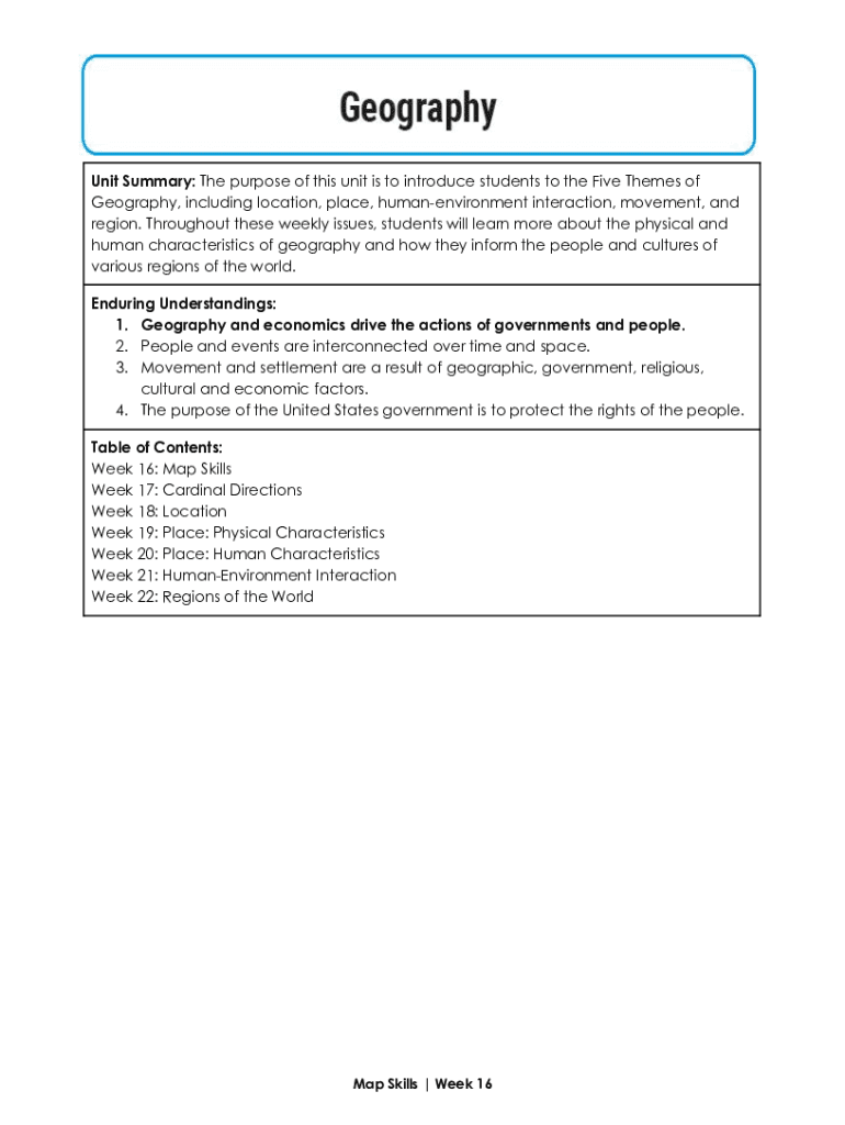 Unit Summary: The purpose of this unit is to introduce students to the Five Themes of