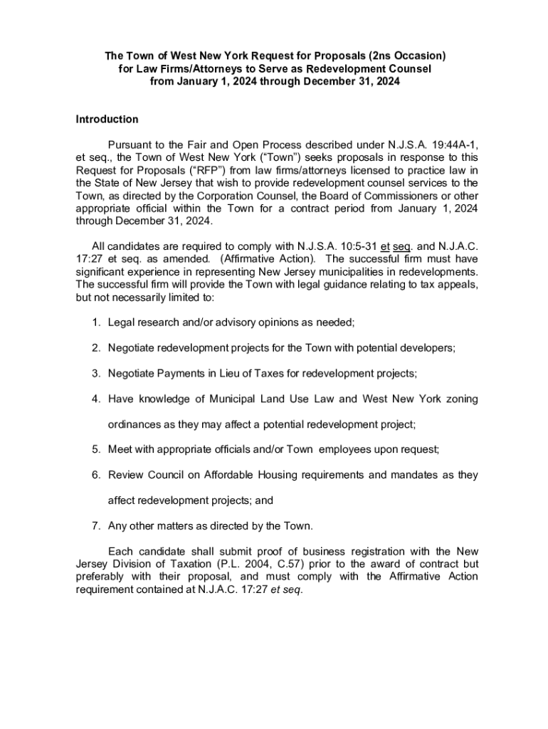 Get the free The Town of West New York Request for Proposals (2ns Occasion ...