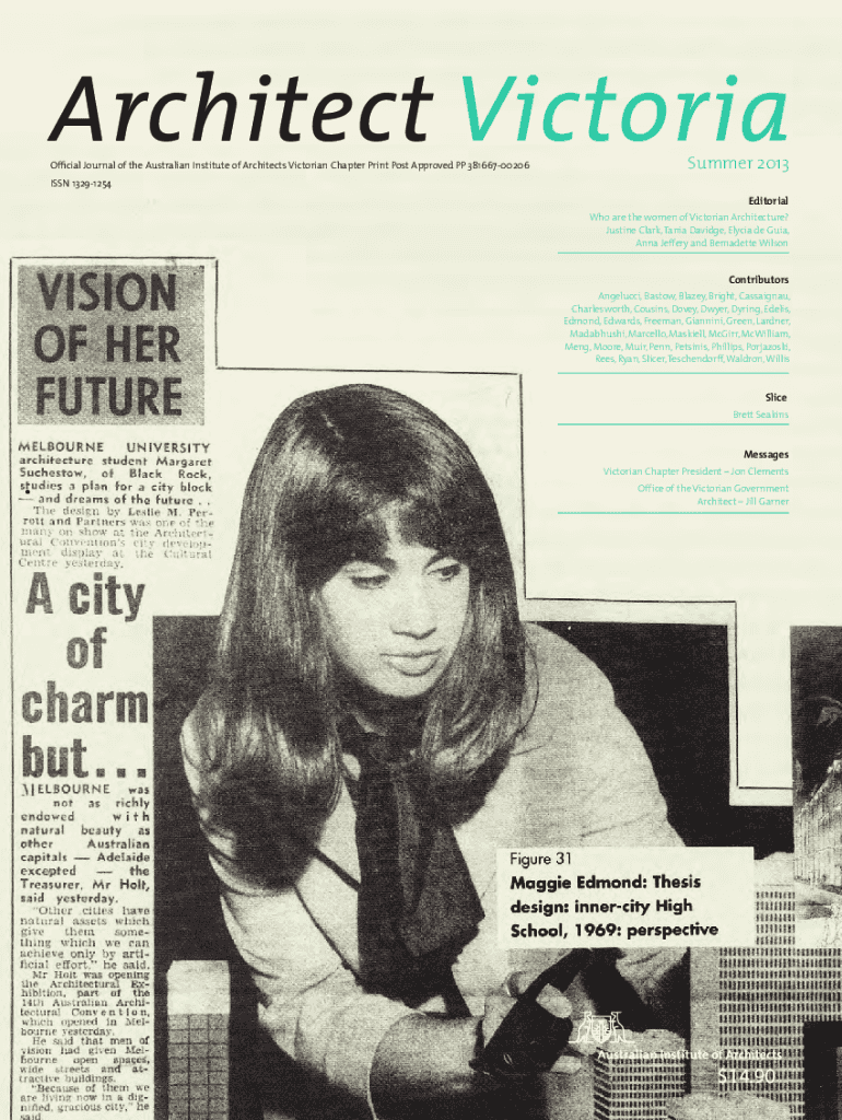 Architect Victoria Official Journal of the Australian Institute of Architects Victorian Chapter Print Post Approved PP 38166700206 ISSN 13291254Summer 2013 EditorialWho are the women of Victorian