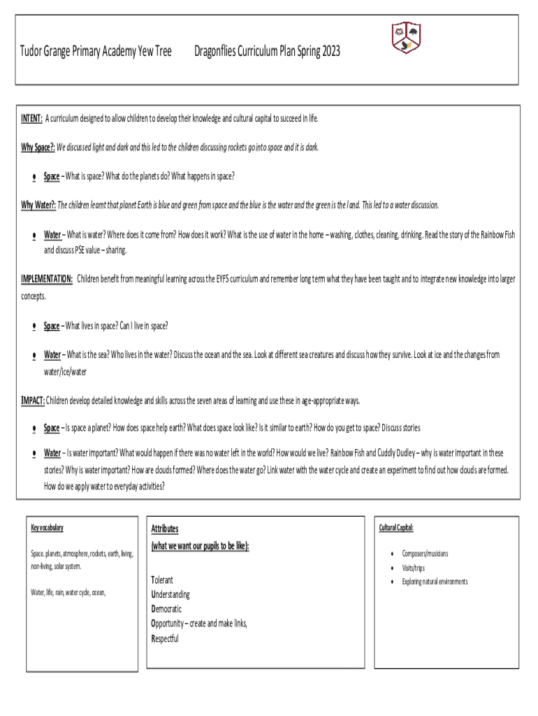 Tudor Grange Primary Academy Yew TreeDragonflies Curriculum Plan Spring 2023INTENT: A curriculum designed to allow children to develop their knowledge and cultural capital to succeed in life. Why